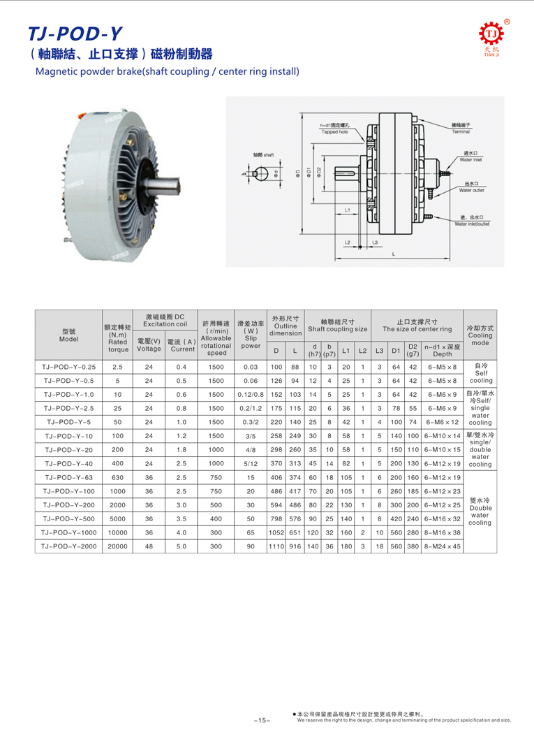 POD-Y磁粉制動器水冷式類別:磁粉制動器